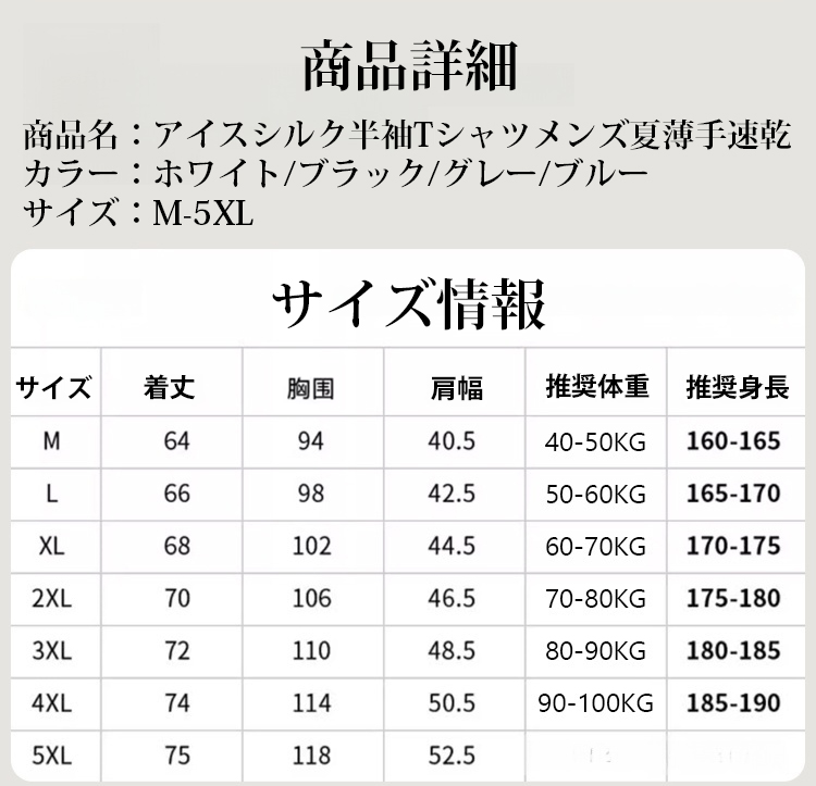 アイスシルクTシャツメンズ夏薄手速乾