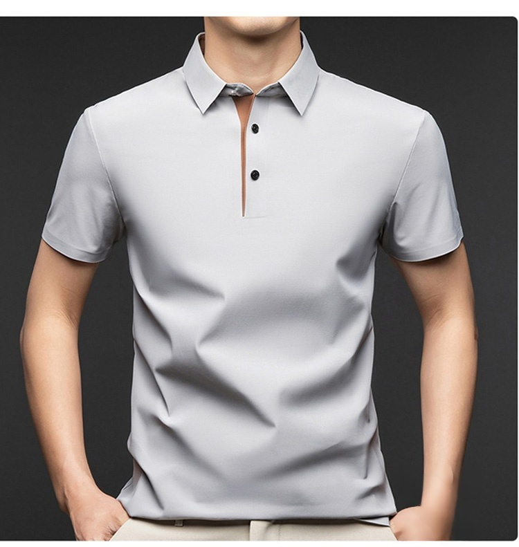 夏用メンズ半袖ポロシャツ アイスシルク涼感素材 4方向ストレッチ  薄手 シワ防止 アイロン不要 メンズ速乾襟付きTシャツ